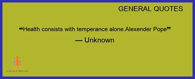 HEALTH CONSISTS with TEMPERANCE alone.Alexender POPE