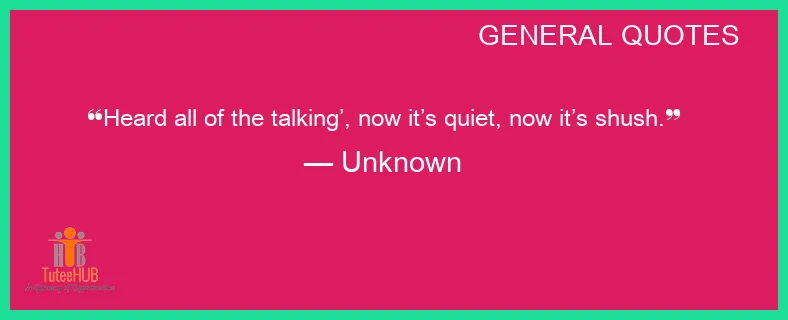 HEARD all of the TALKING’, now it’s QUIET, now it’s shush.