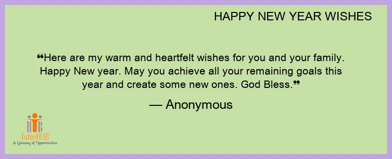 Here are my warm and heartfelt wishes for you and your family. Happy New year. May you achieve all your remaining goals this year and create some new ones. God Bless.