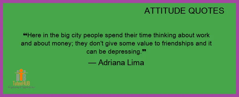Here in the big CITY PEOPLE spend their TIME THINKING about work and about money; they don't GIVE some value to friendships and it can be depressing.