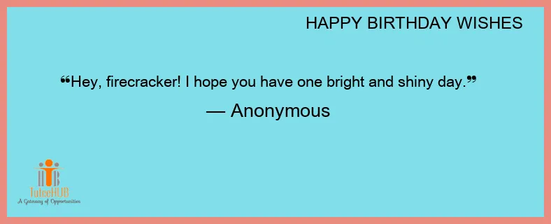 Hey, firecracker! I hope you have one bright and shiny day.