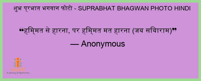 हिम्मत से हारना, पर हिम्मत मत हारना (जय सियाराम)