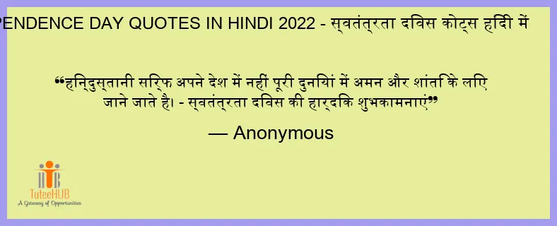 हिन्दुस्तानी सिर्फ अपने देश में नहीं पूरी दुनियां में अमन और शांति के लिए जाने जाते है। - स्वतंत्रता दिवस की हार्दिक शुभकामनाएं