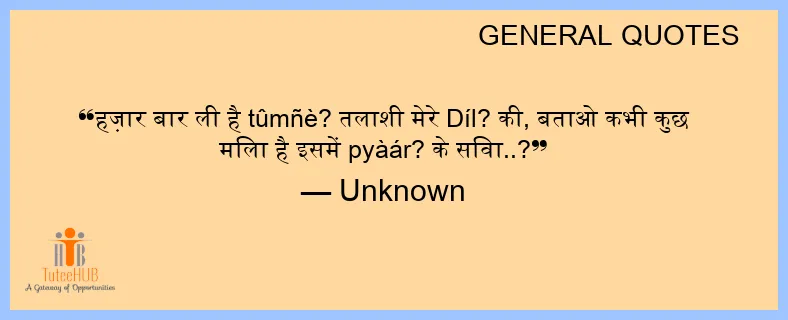 हज़ार बार ली है tûmñè? तलाशी मेरे Díl? की, बताओ कभी कुछ मिला है इसमें pyàár? के सिवा..?