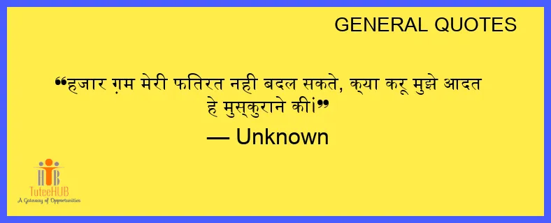 हजार ग़म मेरी फितरत नही बदल सकते, क्या करू मुझे आदत हे मुस्कुराने की।ं