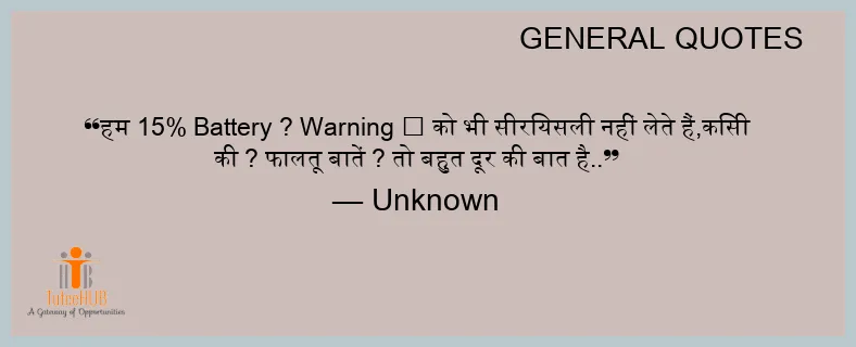 हम 15% Battery ? Warning ⚠ को भी सीरियसली नहीं लेते हैं,किसी की ? फालतू बातें ? तो बहुत दूर की बात है..