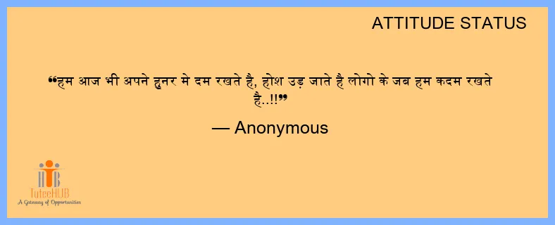 हम आज भी अपने हुनर मे दम रखते है, होश उड़ जाते है लोगो के जब हम कदम रखते है..!!