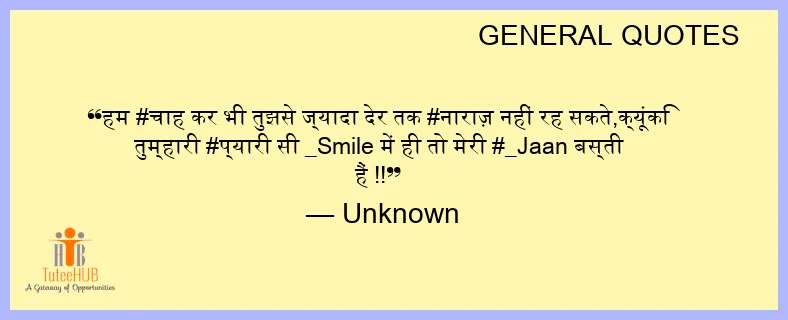 हम #चाह कर भी तुझसे ज्यादा देर तक #नाराज़ नहीं रह सकते,क्यूंकि तुम्हारी #प्यारी सी _Smile में ही तो मेरी #_Jaan बस्ती हैं !!