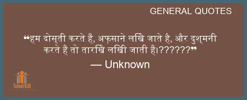 हम दोस्ती करते हैं, अफ़साने लिखे जाते है, और दुश्मनी करते हैं तो तारिखे लिखी जाती हैं।??????