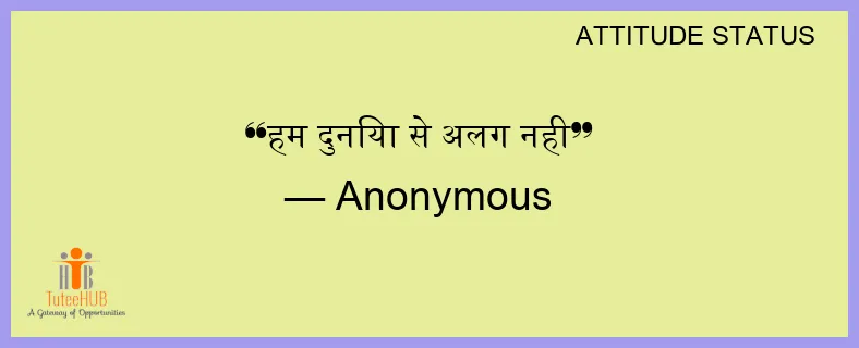 हम दुनिया से अलग नही