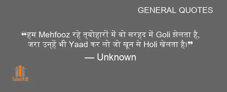 हम Mehfooz रहे त्योहारों में वो सरहद में Goli झेलता है, जरा उन्हें भी Yaad कर लो जो खून से HOLI खेलता है।