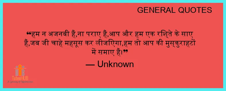 हम न अजनबी हैं,ना पराए हैं,आप और हम एक रिश्ते के साए हैं,जब जी चाहे महसूस कर लीजिएगा,हम तो आप की मुस्कुराहटों में समाए हैं।