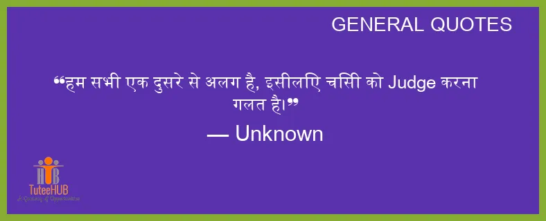 हम सभी एक दुसरे से अलग है, इसीलिए चिसी को JUDGE करना गलत है।