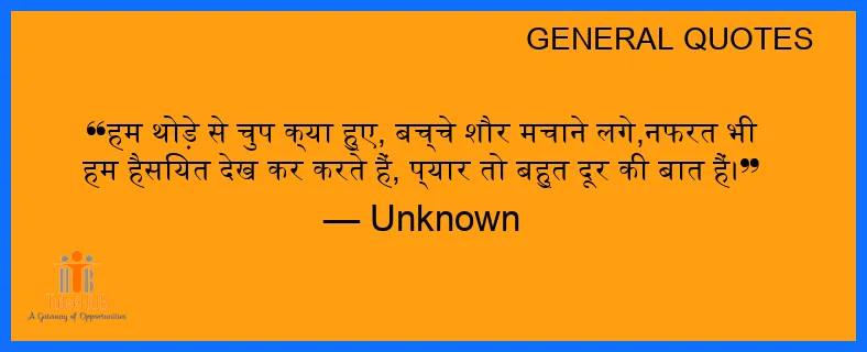 हम थोड़े से चुप क्या हुए, बच्चे शौर मचाने लगे,नफरत भी हम हैसियत देख कर करते हैं, प्यार तो बहुत दूर की बात हैं।