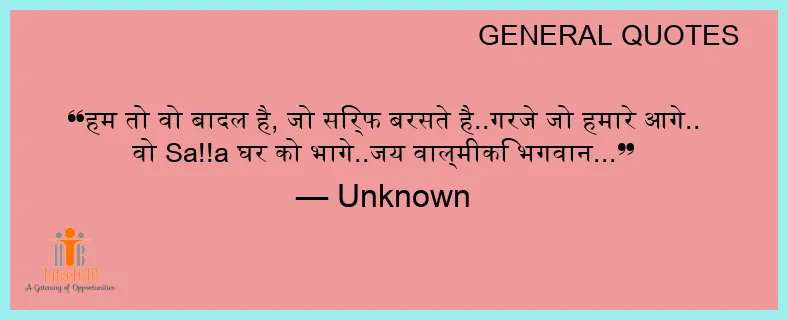हम तो वो बादल है, जो सिर्फ बरसते है..गरजे जो हमारे आगे.. वो Sa!!a घर को भागे..जय वाल्मीकि भगवान...