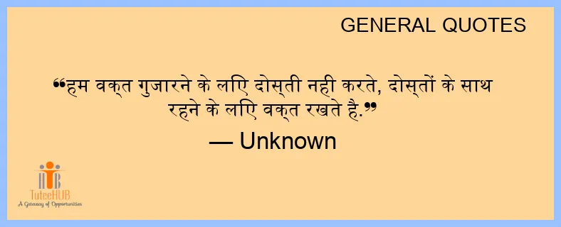 हम वक्त गुजारने के लिए दोस्ती नही करते, दोस्तों के साथ रहने के लिए वक्त रखते है.