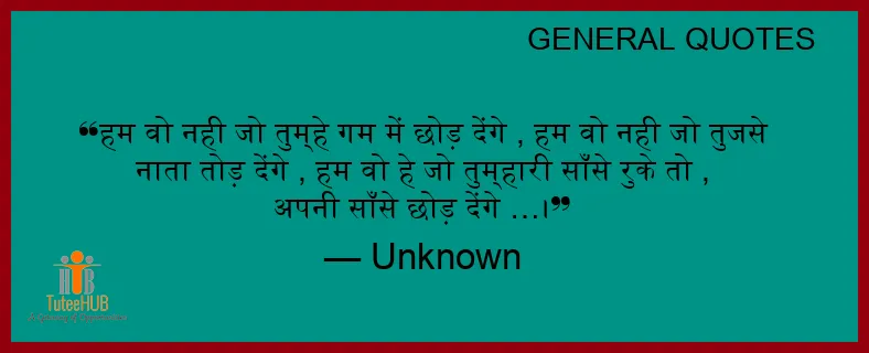 हम वो नही जो तुम्हे गम में छोड़ देंगे , हम वो नही जो तुजसे नाता तोड़ देंगे , हम वो हे जो तुम्हारी साँसे रुके तो , अपनी साँसे छोड़ देंगे …।