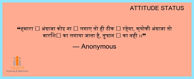 हमारा 👤 अंदाजा कोइ ना ❌ लगाए तो ही ठीक 🤗 रहेगा, क्योकी अंदाजा तो बारिश⛈ का लगाया जाता है, तुफान 🌪 का नही ।।