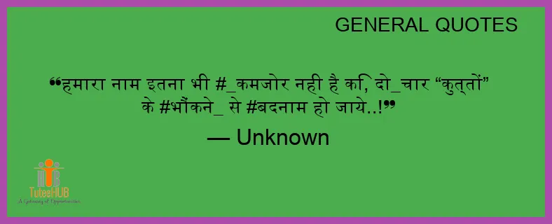 हमारा नाम इतना भी #_कमजोर नही है कि, दो_चार “कुत्तों” के #भौंकने_ से #बदनाम हो जाये..!