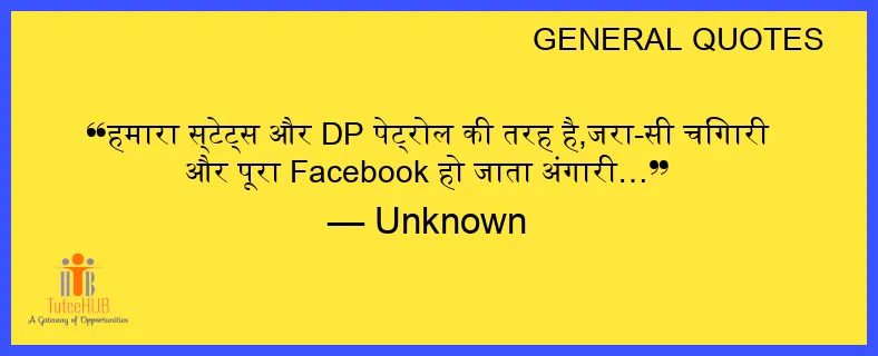 हमारा स्टेट्स और DP पेट्रोल की तरह है,जरा-सी चिंगारी और पूरा FACEBOOK हो जाता अंगारी…