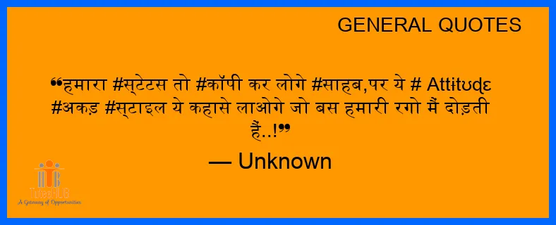 हमारा #स्टेटस तो #कॉपी कर लोगे #साहब,पर ये # Attɨtʊɖɛ #अकड़ #स्टाइल ये कहासे लाओगे जो बस हमारी रगो मैं दोड़ती हैं..!