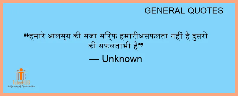 हमारे आलस्य की सजा सिर्फ हमारीअसफलता नहीं है दुसरो की सफलताभी है