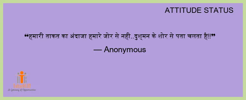 हमारी ताकत का अंदाजा हमारे जोर से नही..दुश्मन के शोर से पता चलता है!!