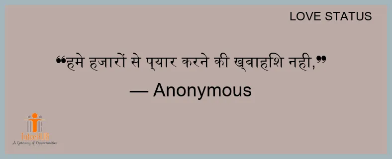 हमे हजारों से प्यार करने की ख्वाहिश नही,