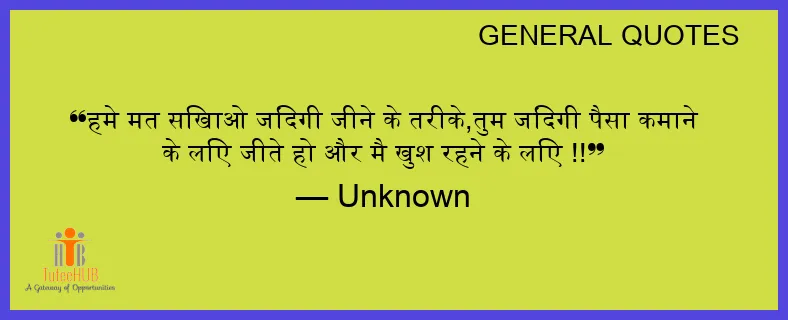 हमे मत सिखाओ जिंदगी जीने के तरीके,तुम जिंदगी पैसा कमाने के लिए जीते हो और मै खुश रहने के लिए !!
