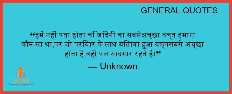 हमें नहीं पता होता कि जिंदगी का सबसेअच्छा वक्त हमारा कौन सा था,पर जो परिवार के साथ बिताया हुआ वक्तसबसे अच्छा होता है,वही पल यादगार रहते हैं।