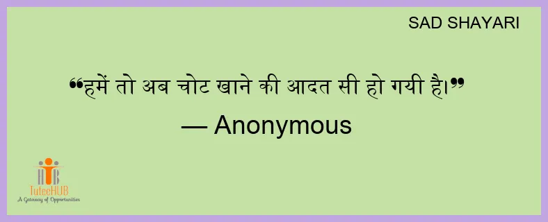 हमें तो अब चोट खाने की आदत सी हो गयी है।