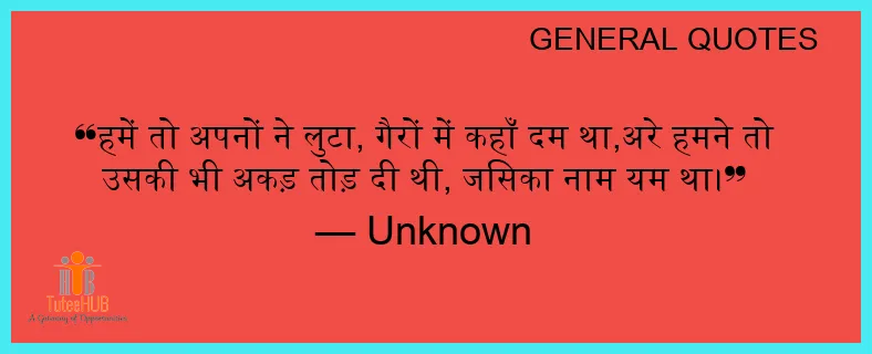 हमें तो अपनों ने लुटा, गैरों में कहाँ दम था,अरे हमने तो उसकी भी अकड़ तोड़ दी थी, जिसका नाम यम था।