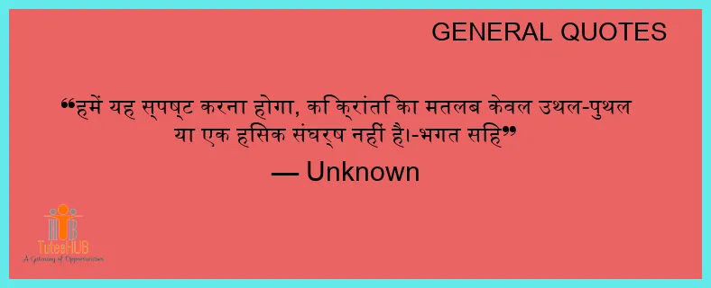 हमें यह स्पष्ट करना होगा, कि क्रांति का मतलब केवल उथल-पुथल या एक हिंसक संघर्ष नहीं है।-भगत सिंह