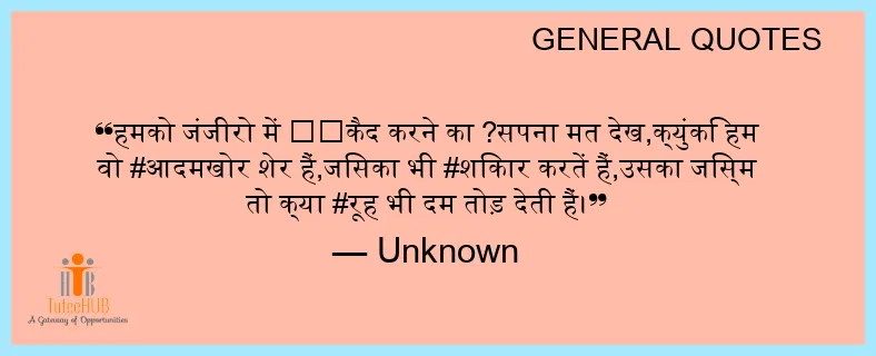 हमको जंजीरो में ⚡️कैद करने का ?सपना मत देख,क्युंकि हम वो #आदमखोर शेर हैं,जिसका भी #शिकार करतें हैं,उसका जिस्म तो क्या #रूह भी दम तोड़ देती हैं।