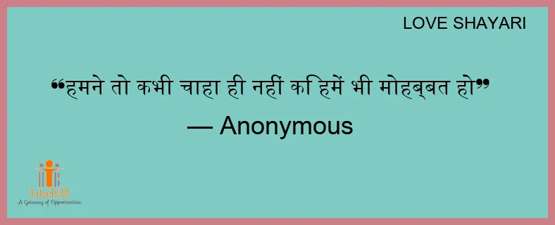 हमने तो कभी चाहा ही नहीं कि हमें भी मोहब्बत हो