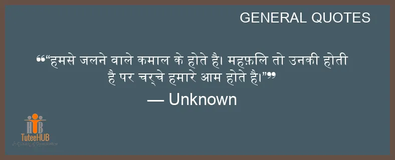 “हमसे जलने वाले कमाल के होते है। महफ़िल तो उनकी होती है पर चर्चे हमारे आम होते है।”