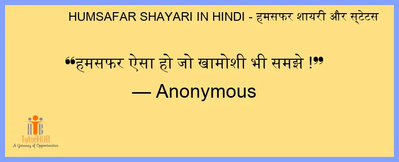 हमसफर ऐसा हो जो खामोशी भी समझे !