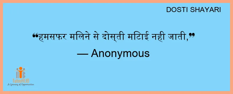 हमसफर मिलने से दोस्ती मिटाई नही जाती,