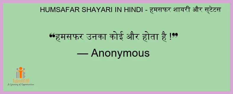 हमसफर उनका कोई और होता है !