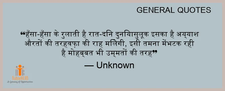 हँसा-हँसा के रुलाती है रात-दिन दुनियासुलूक इसका है अय्याश औरतों की तरहवफ़ा की राह मिलेगी, इसी तमना मेंभटक रही है मोहब्बत भी उम्मतों की तरह
