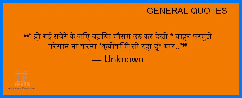 “ हो गई सवेरे के लिए बड़िया मौसम उठ कर देखो * बाहर परमुझे परेसान ना करना *क्योंकि मैं सो रहा हूं* यार..”
