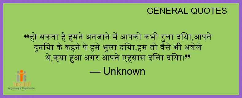 हो सकता है हमने अनजाने में आपको कभी रुला दिया,आपने दुनिया के कहने पे हमे भुला दिया,हम तो वैसे भी अकेले थे,क्या हुआ अगर आपने एहसास दिला दिया।