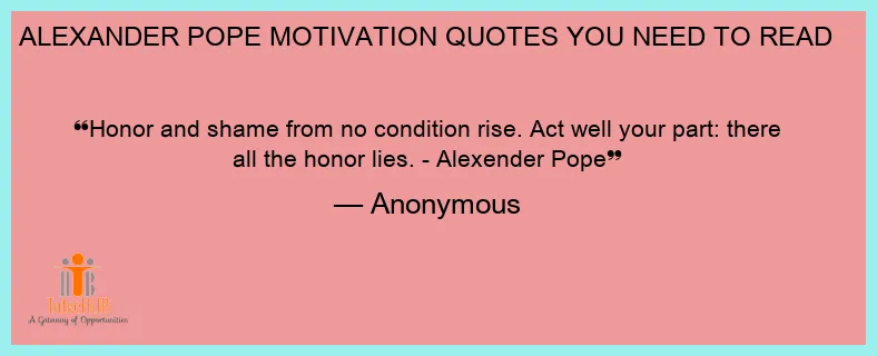 Honor and shame from no condition rise. Act well your part: there all the honor lies. - Alexender Pope