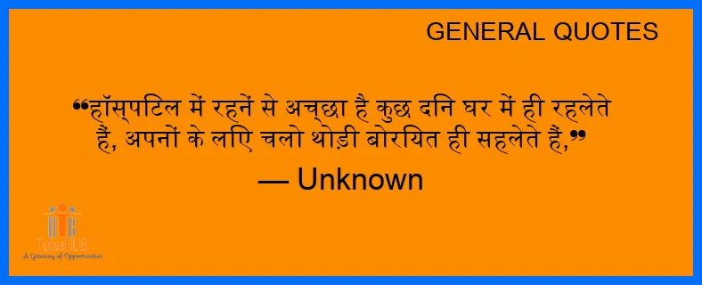 हॉस्पिटल में रहनें से अच्छा है कुछ दिन घर में ही रहलेते हैं, अपनों के लिए चलो थोड़ी बोरियत ही सहलेते हैं,