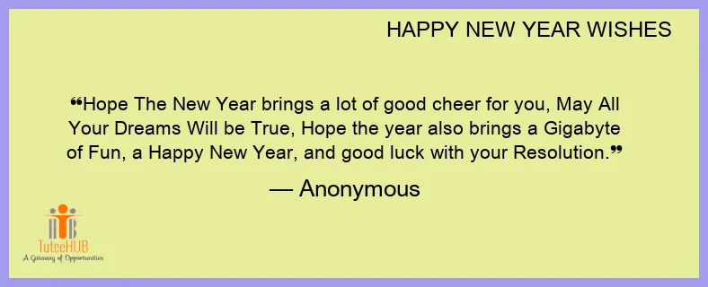 Hope The New Year brings a lot of good cheer for you, May All Your Dreams Will be True, Hope the year also brings a Gigabyte of Fun, a Happy New Year, and good luck with your Resolution.