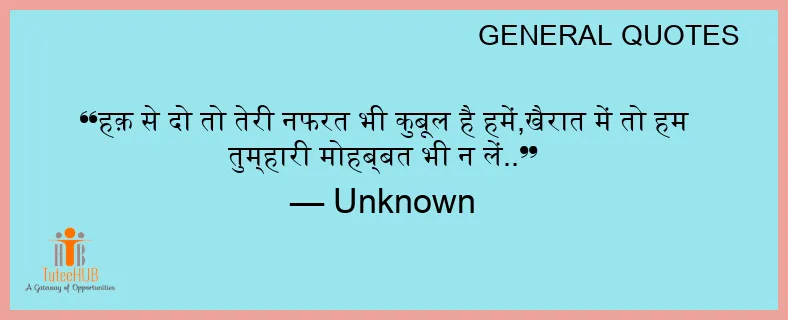 हक़ से दो तो तेरी नफरत भी कुबूल है हमें,खैरात में तो हम तुम्हारी मोहब्बत भी न लें..