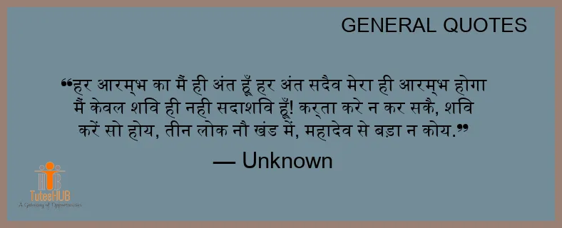 हर आरम्भ का मैं ही अंत हूँ हर अंत सदैव मेरा ही आरम्भ होगा मैं केवल शिव ही नही सदाशिव हूँ! कर्ता करे न कर सकै, शिव करें सो होय, तीन लोक नौ खंड में, महादेव से बड़ा न कोय.