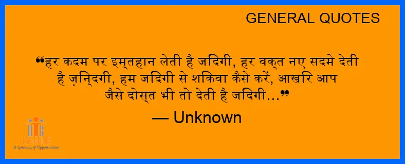 हर कदम पर इम्तहान लेती है जिंदगी, हर वक्त नए सदमे देती है ज़िन्दगी, हम जिंदगी से शिकवा कैसे करें, आखिर आप जैसे दोस्त भी तो देती है जिंदगी…