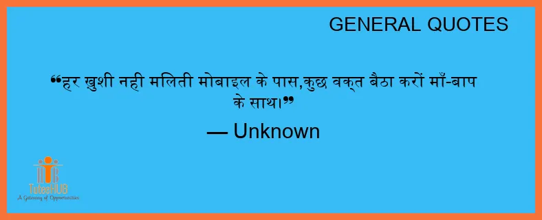 हर ख़ुशी नही मिलती मोबाइल के पास,कुछ वक्त बैठा करों माँ-बाप के साथ।