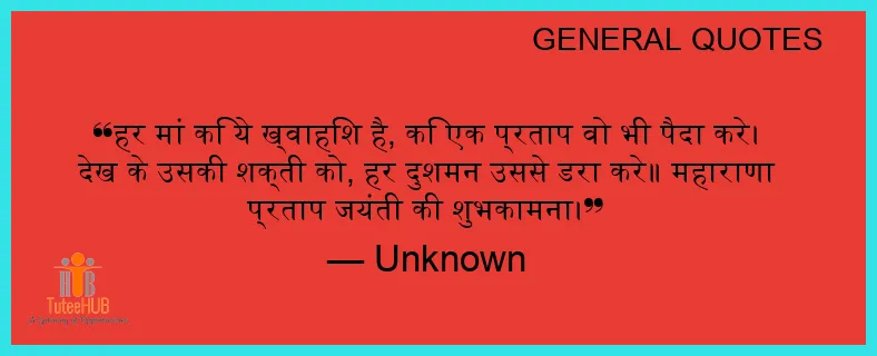 हर मां कि ये ख्वाहिश है, कि एक प्रताप वो भी पैदा करे। देख के उसकी शक्ती को, हर दुशमन उससे डरा करे॥ महाराणा प्रताप जयंती की शुभकामना।